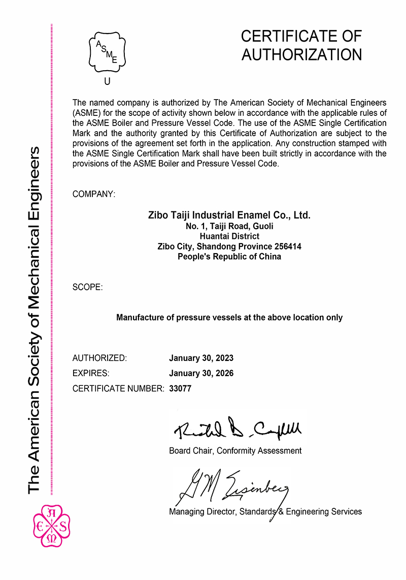 淄博太極工業搪瓷有限公司專業制造搪玻璃設備、氟塑料設備及碳鋼、不銹鋼壓力容器的大型企業。現有員工1000余人,注冊資金11900萬元,占地600畝,生產車間19萬平米,凈資產超20億元。太極以人為本,單用于職工的居住生活投入已達3億,使工者有其房,家人生活及孩子....[查看更多]